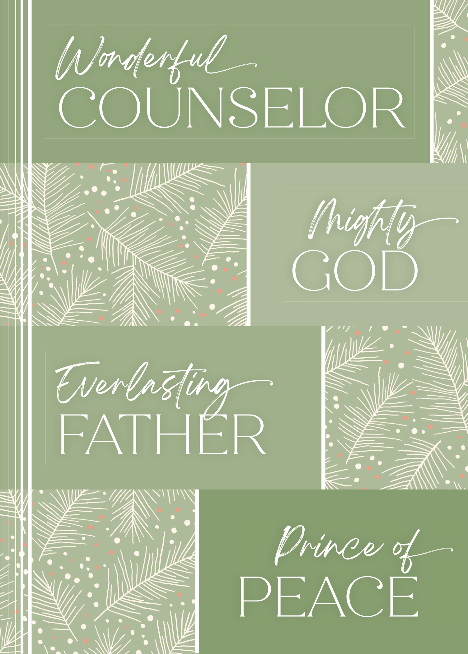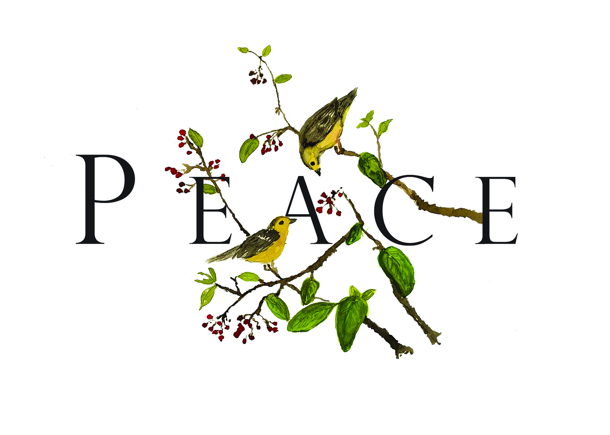 Gracefully woven into the composition, the branches of the Holly intertwine around the word Peace, serving as a visual reminder of the hope and harmony we all long for, especially during the holidays.