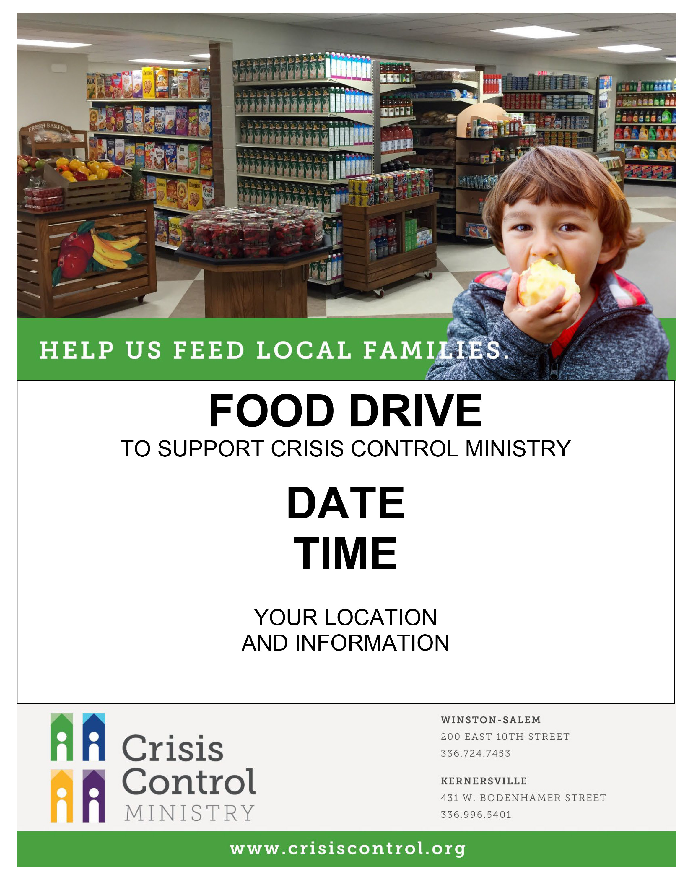 MS Word document that can be customized with your food drive information. 8.5" x 11"